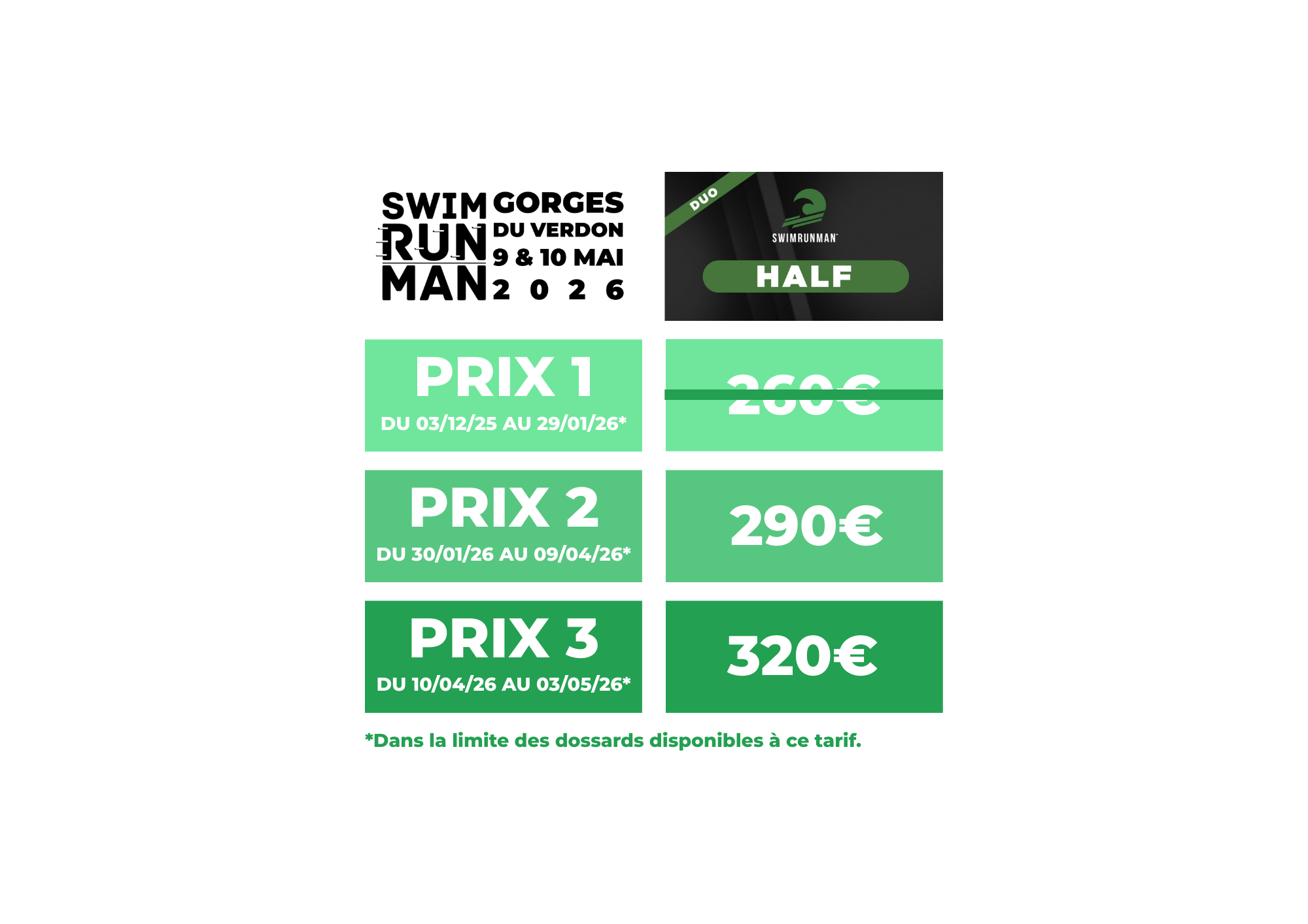 Toutes les informations sur l’option annulation sont disponibles dans le formulaire d’inscription et dans notre règlement (Article 2.10).